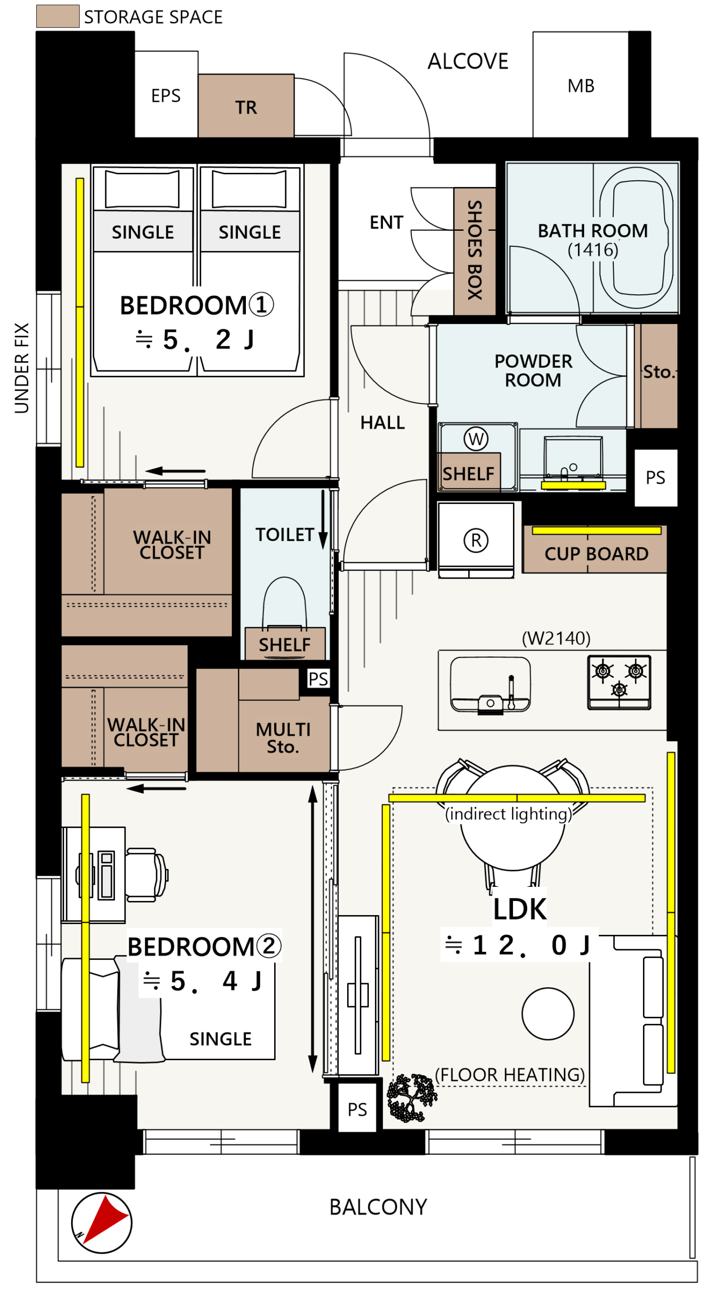 2BEDROOMS + 2W + M Condominium • 56.51 m2