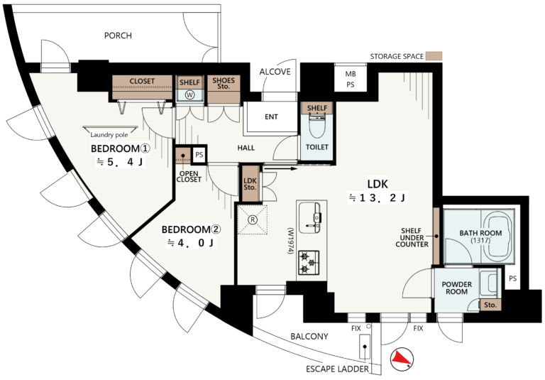 2BEDROOMS Condominium • 54.73 m2